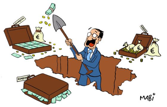 Un changement radical d’orientation est donc nécessaire et urgent. Le secteur financier doit être mis au pas et retrouver sa fonction première : être un outil au service de l’économie et de l’intérêt général. Les responsables de cette catastrophe économique et sociale, à savoir les gros actionnaires, les gestionnaires et les autorités publiques de contrôle, doivent par ailleurs assumer leurs responsabilités. Jusqu’à aujourd’hui, au nom du réalisme, le courage politique a été totalement absent. Pourtant, la réalité est celle-ci : rassurer les marchés et se soumettre aux intérêts de la finance ne marche pas. C’est l’inverse qu’il faut faire, et vite. Faute de quoi, dans un avenir plus ou moins proche, une très grave crise des finances publiques et de la dette belge pourrait survenir, avec des conséquences sociales dramatiques.
